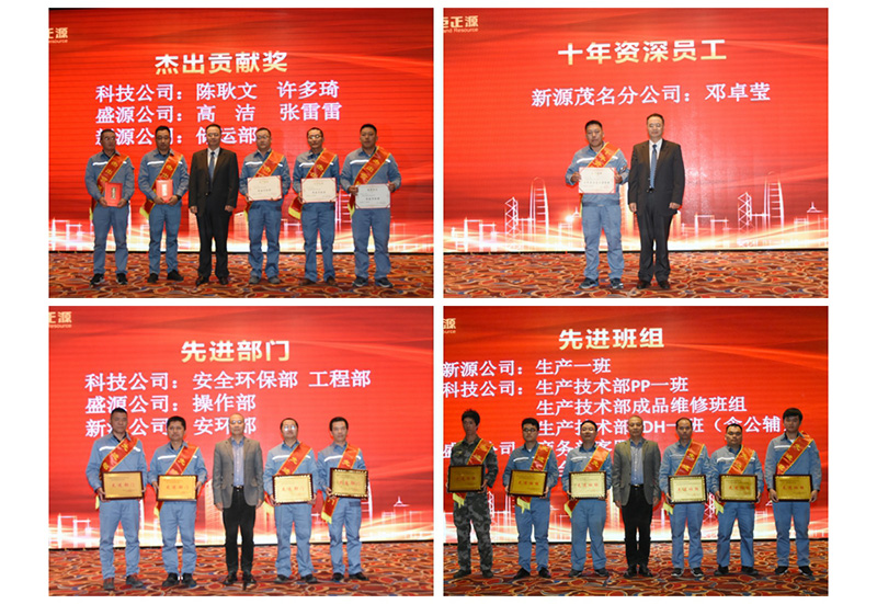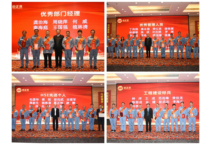 党总支书记张宝业在会上宣读了公司2018年度先进集体和先进员工的表彰决定。本次年度表彰共设“杰出贡献奖”、“先进部门”、“先进班组”、“优秀部门经理”、“优秀管理人员”、“优秀员工”、“工程建设标兵”、“HSE先进个人”、“优秀学员”、“十年资深员工荣誉奖”等10个奖项,共有94个先进集体和先进员工获得通报表彰。公司领导分别为获奖集体及个人颁发获奖证书,感谢他们过去一年的努力拼搏,为公司持续健康发展做出了积极贡献。
