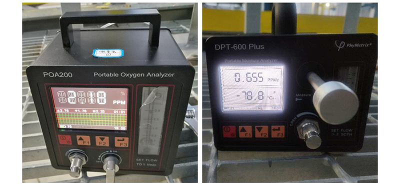 经检测,氧含量及水均已合格,氮气纯度超过99.99%,质量优于设计指标。该装置每小时生产氮气10000标准立方米,每小时生产液氮570标准立方米,可为生产装置投产、运行提供用气保障。