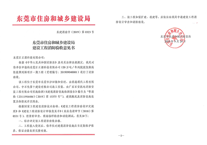 近日,mk体育(中国大陆)官方网站|mksports,120万吨/年丙烷脱氢制高性能聚丙烯项目一期工程顺利通过东莞市住房和城乡建设局的消防验收,为该项目全线投产提供了坚实的安全保障。