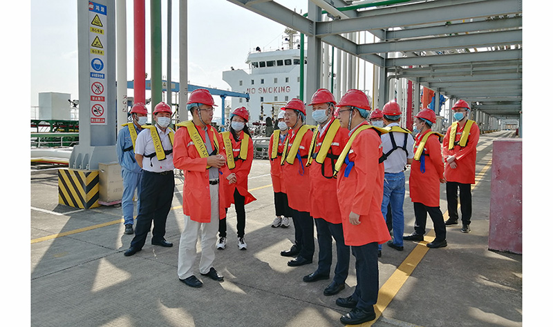 骆贵全一行先后参观了巨正源公司旗下的盛源油库、鸿源码头、聚丙烯项目一期生产现场和二期建设现场,详细了解油库和码头的运作情况、聚丙烯项目一期生产运营和二期工程建设情况。