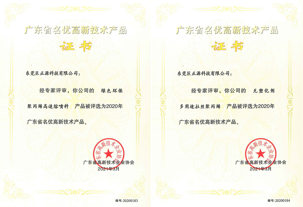近日,mk体育(中国大陆)官方网站|mksports,自主研发、生产的“绿色环保聚丙烯高速熔喷料”、“无塑化剂多用途拉丝聚丙烯”两类产品荣获“广东省名优高新技术产品”称号,标志着巨正源的高分子材料研发取得新成效、迈上新台阶。